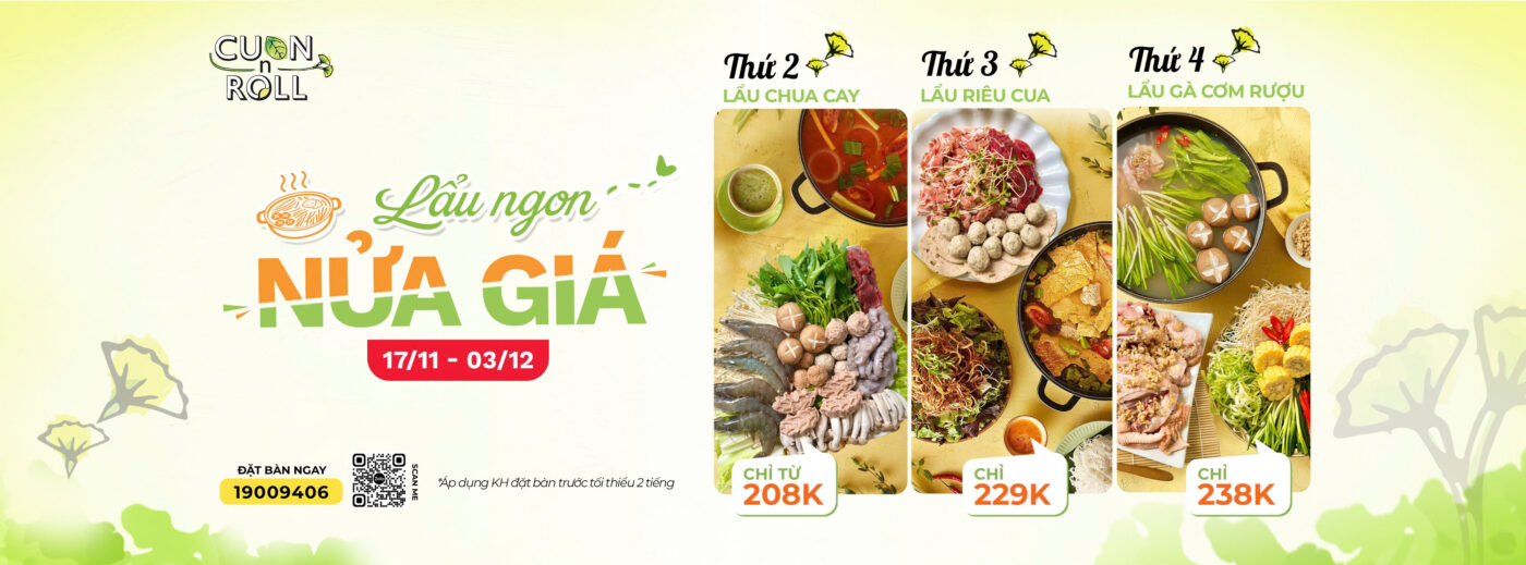 Cuốn N Roll là mô hình nhà hàng chuyên các món cuốn Việt Nam. Độc đáo nhưng hiện đại và mang một phong cách Việt mới với những trải nghiệm Cuốn tinh tế, mới lạ, thú vị và đa dạng phong cách ăn.Niềm tự hào về Gỏi cuốn – một trong 50 món ăn ngon nhất thế giới do CNN bình chọn hay Bánh tráng phơi sương Trảng Bàng – được công nhận là di sản văn hoá phi vật thể cấp Quốc gia,… những món Cuốn giản dị mà đặc biệt đã thôi thúc chúng tôi tạo nên không gian ẩm thực Cuốn N Roll – nơi dừng chân, hội tủ của hơn 20 món Cuốn đặc trưng và những món ăn hấp dẫn khác.