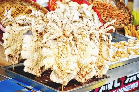 Món mực tẩm bột chiên cũng rất được ưa chuộng bởi độ giòn thơm, ngọt đặc trưng của món ăn này. Món này được chế biến từ mực tươi và thường được dùng kèm các loại xốt và tương ớt.