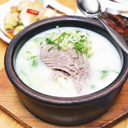 Seolleongtang – món canh xương bò hầm với phần nước hầm trắng sữa, nóng hổi và ngọt lừ vị xương thịt được ninh chín mềm là món bạn nhất định nên thử qua khi tới Seoul.