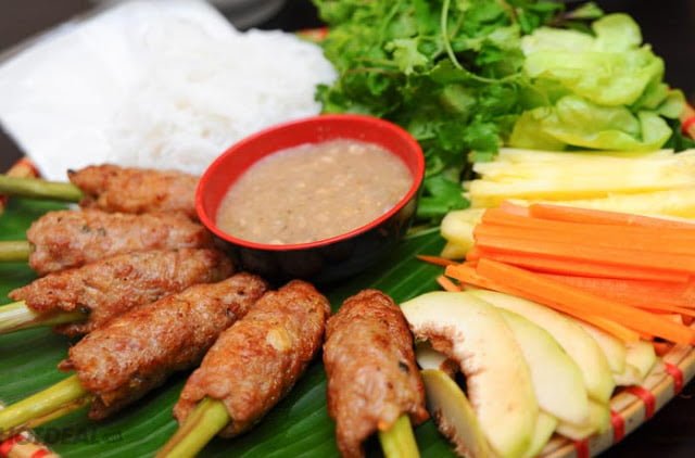 Đây là đặc sản ở Đà Nẵng, nhưng đến Hà Nội bạn mới biết mức độ phủ sóng của nó đến mức nào. Món ăn này khác đơn giản, một phần bánh tráng cuốn thịt heo gồm đĩa thịt lợn ba chỉ luộc, ăn kèm với nhiều loại rau xanh như xà lách, rau thơm, xoài xanh,.. rồi cuốn vào một bánh phở mỏng và bánh tráng.