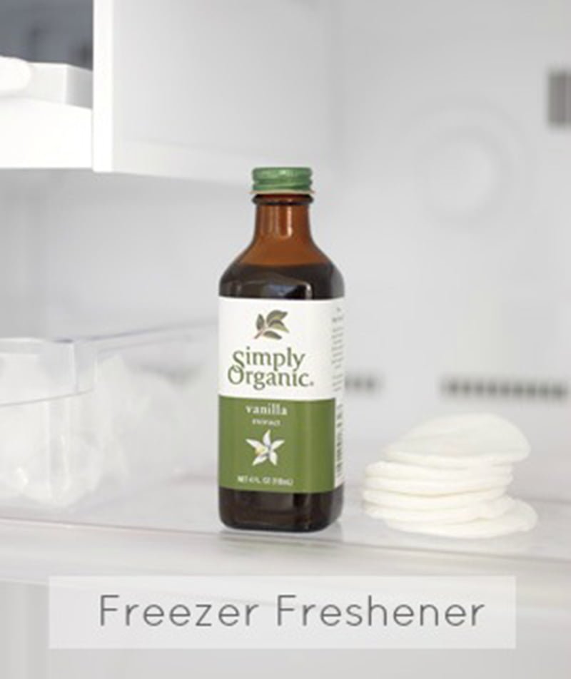 Dùng dung dịch vani thấm vào miếng bông gòn, sau đó có thể lau vết bẩn ở tủ lạnh.