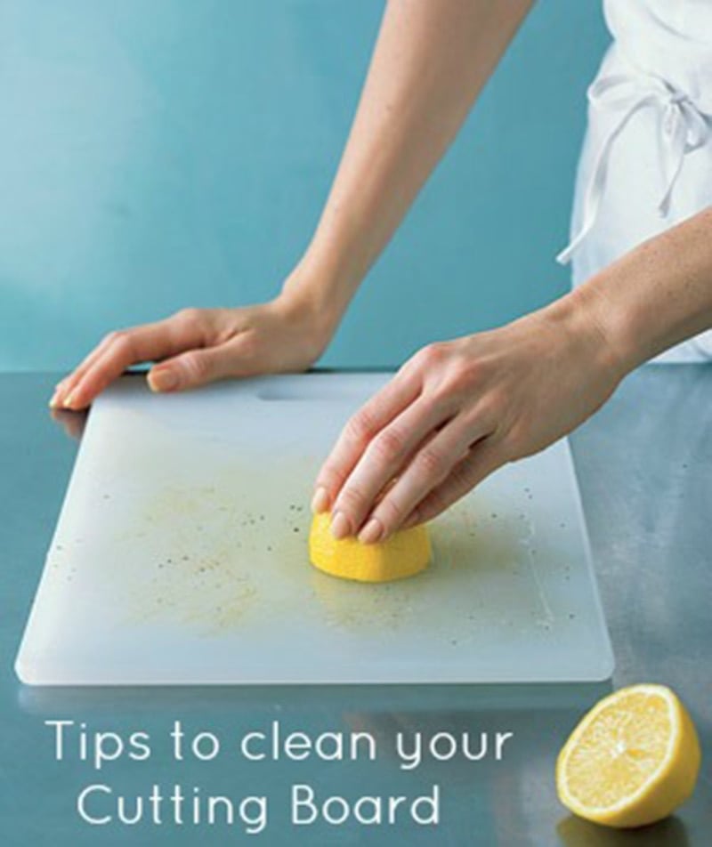 Để làm sạch thớt, lấy nửa quả chanh chà sát lên bề mặt thớt để loại bỏ vết bẩn từ thớt gỗ và nhựa. Sau 20 phút chúng ta rửa sạch lại