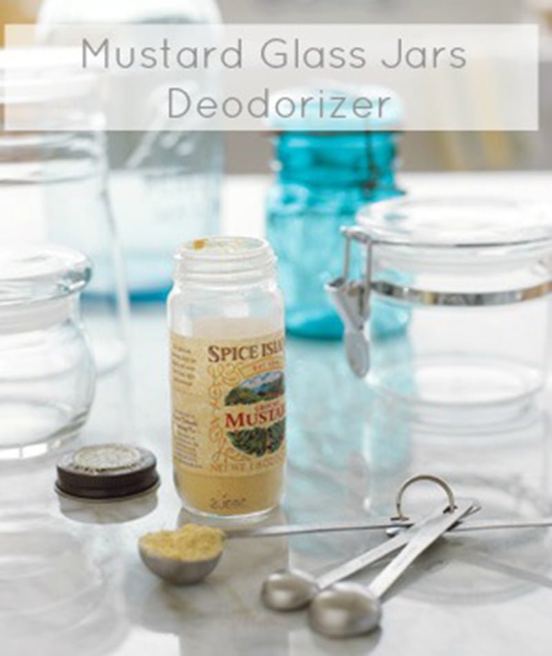 Khử mùi hôi của lọ thủy tinh bằng cách cho một thìa mù tạt và nước vào trong lọ. Để khoảng 2-3 tiếng sau đó rửa lại lọ.