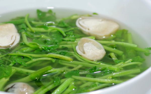 Canh xà lách xoong nấu với nấm – Món canh thanh mát.