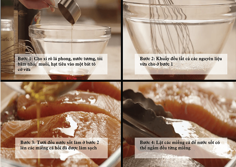 Vị ngọt nhẹ của xi rô, vị thơm bùi của nước tương cùng vị cay của tiêu sẽ khiến cho từng miếng cá hồi đậm đà hơn bao giờ hết.