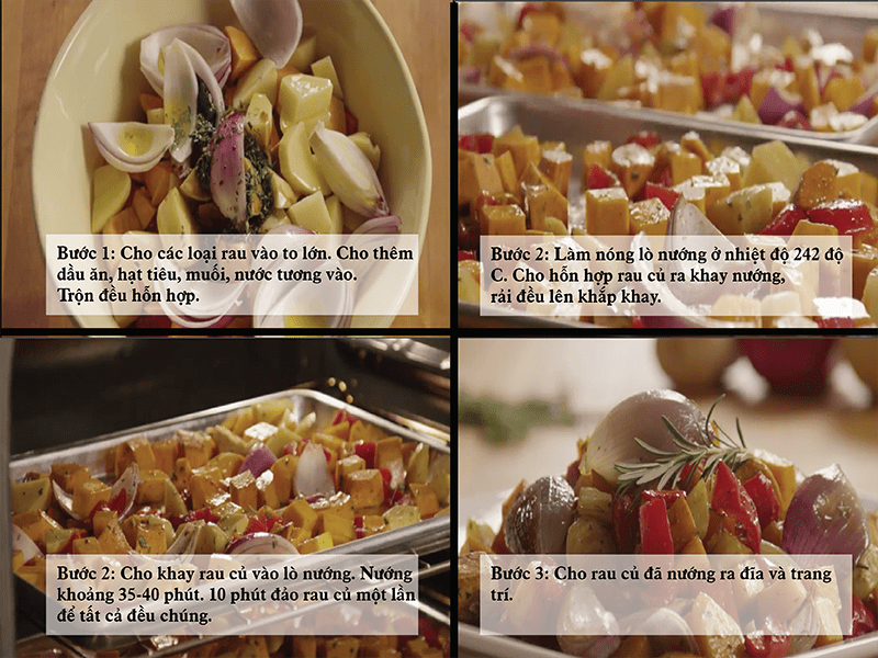 Chú ý: các loại rau củ đều được thái miếng vừa ăn trước khi chế biến.