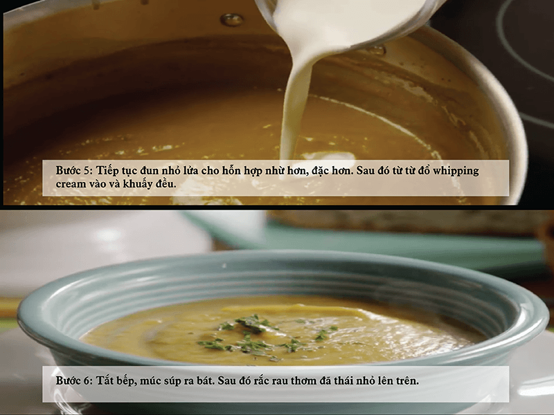 Bí ngô được biết đến là loại củ giàu dưỡng chất. Súp bí ngô kem tươi ăn vừa có vị ngọt của bí, vị ngậy của kem tươi và đậm đà của nước xương. Không có dầu mỡ là điểm cộng cho món súp này.