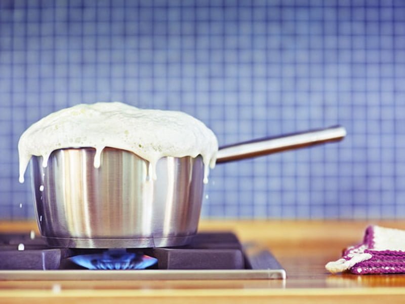 Khi đun sữa, nếu sữa chuẩn bị trào, bạn hãy cho một vài hạt muối vào đó, sữa sẽ không bị trào ra.