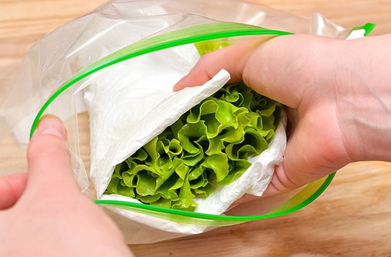 Thông thường, rau xanh cho vào tủ lạnh một vài ngày sẽ bị đóng đá hoặc dập nát. Vì vậy, các mẹ hãy bọc rau bằng tờ báo để giấy báo hút độ ẩm, giúp rau luôn khô nhé. Như vậy rau sẽ xanh và tươi lâu hơn.