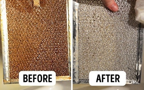 Làm ướt tấm lọc bằng nước qua bình xịt, sau đó dùng bàn chải nhúng vào thuốc tẩy và cọ rửa. Để chờ trong 10 phút, xả sạch dưới vòi nước và cảm nhận sự khác biệt.