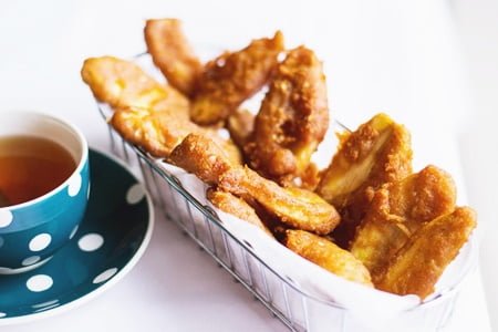Bước 1: Chuối bóc vỏ cắt làm 4 lát bằng nhau. Cho ½ thìa canh bơ vào chảo đun tan chảy rồi cho chuối vào chiên xém vàng hai mặt thì gắp ra đĩa.