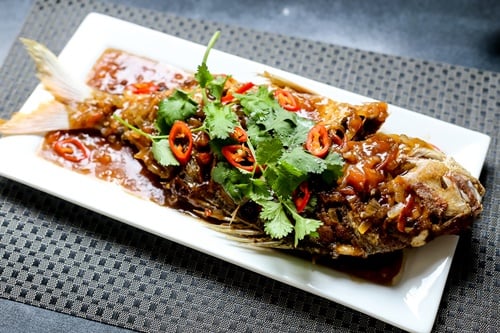 – Cá: Bạn có thể chọn loại cá tùy thích như cá chim, cá diêu hồng, cá tai tượng,….