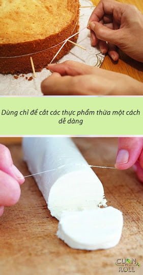 Với những thực phẩm mềm như bánh gato, phomat, bánh kem…thì thay vì dùng dao cắt chúng ta có thể sử dụng chỉ để xử lý chúng một cách khác thuận lợi và nhanh chóng mà lại cho vết cắt đẹp nữa.