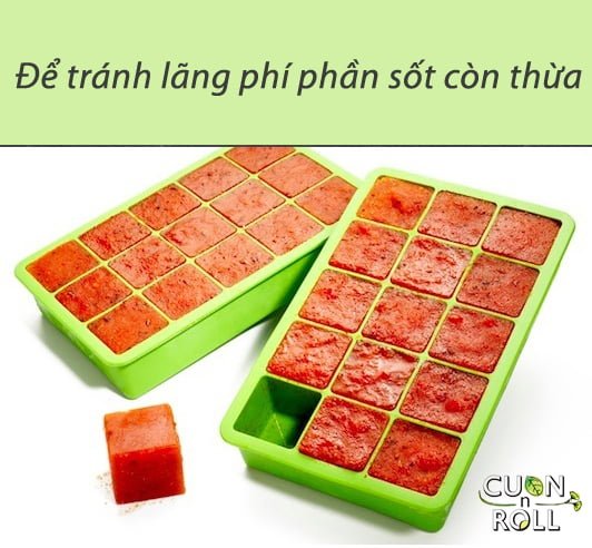 Lãng phí là một điều không hề tốt chút nào, với những phần sốt nấu còn thừa các mẹ không nên đổ đi mà hãy cho vào những khuân làm đá và bỏ vào trong ngăn đá để dành cho lần nấu sau nhé. Nên dùng các khuân chia thành các ô nhỏ, như vậy khi lấy ra sẽ tiện cho việc chia phần và ước tính lượng dùng một cách hiệu quả, tiết kiệm.