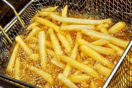 Cũng giống như món nướng, những món ăn chiên rán luôn được chào đón nhất trong một bữa ăn, đặc biệt là với trẻ em. Tuy nhiên, đây cũng là cách nấu nướng không tốt cho sức khỏe. Bởi chiên thức ăn ngập dầu sẽ làm tăng lượng chất béo bão hòa của thực phẩm, nguyên nhân gây tăng cân và cholestrerol. Bạn nên hạn chế các món ăn chiên rán, thay vào đó là luộc hoặc hấp.