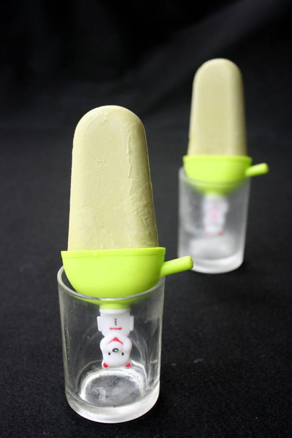 Để lấy kem ra khỏi khuôn, nhúng khuôn vào nước ấm rồi kéo mạnh que kem ra.