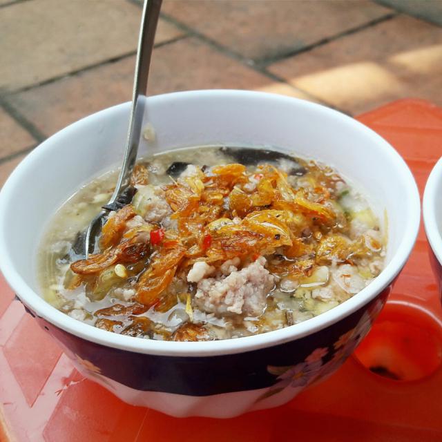 Những bát bánh đúc dẻo quánh, trắng mịn sóng sánh được chan bằng thứ nước dùng vàng óng, nổi bật phía trên là màu xanh của rau mùi thái nhỏ, là một chút thịt băm xào mộc nhỉ, một chút hành khô thơm nức vàng ruộm. Mới nhìn thôi đã thấy thật ngon mắt rồi. Nhưng không thử sao biết được món ăn ngon, thử món ăn này, bạn sẽ cảm nhận được cái hài hòa và ngon miệng. Những miếng bánh rất mềm và dẻo, thịt băm thơm hòa với vị hành khô, vị rau mùi làm bánh đúc nóng ăn không hề bị chán ấy vậy mà có thực khácch ghiền qua ăn liền 1 lúc ba bát mà vẫn xuýt xoa, thèm thuồng.