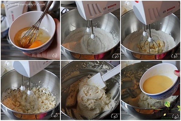 9. Đánh kem: đánh bông bơ với đường rồi từ từ cho sữa, đánh đến hòa quyện. Hoặc có thể dung whipping cream bán sẵn ở các siêu thị đánh bông với các vị tùy thích, cách này sẽ nhanh và tiện hơn.