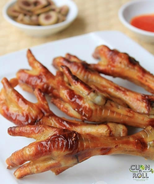 – Ướp với chân gà trong khoảng 30 phút -1h cho ngấm sau đó đem lên nướng trên than hoa hoặc lò nướng. Chân gà nướng có thể ăn kèm với tương ớt hoặc muối tiêu chanh.