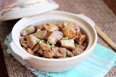 – Bước 1: Sơ chế nguyên liệu: Rửa sạch thịt gà, rồi lọc bỏ xương, thái nhỏ ướp gia vị hạt nêm, tỏi băm, đường phèn khoảng 15 phút. Khoai sọ gọt vỏ, rửa sạch để ráo nước. Mộc nhĩ ngâm nước, rửa sạch thái thành đoạn nhỏ.