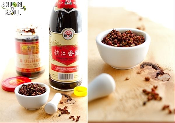 – Hoà tan rượu, giấm, nước, tương cà với nhau. Trút hỗn hợp vào chảo, quậy đều. Nêm chút đường để dằn vị chua cay xuống. Cho tiêu vào quậy đều. Đợi hỗn hợp sôi lên, nhắc xuống, thêm vài giọt dầu mè.