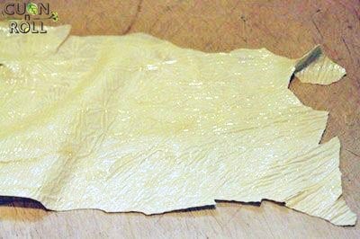 – Tiếp theo trải miếng phù trúc ra thớt.