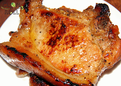 -Cho vào chảo 1 thìa dầu ăn, rán vàng cả 2 mặt. Rán ở lửa vừa, đậy vung để thịt chín vào trong miếng thịt.