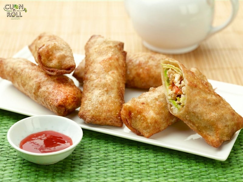 – Các bạn gắp nem ra đĩa có lót giấy thấm bớt dầu rồi trình bày ra đĩa sứ đẹp mắt, dùng nóng với nước chấm chua ngọt tùy thích.