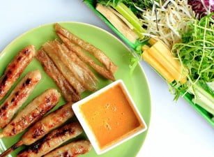 Nem nướng Nha Trang sau khi được nướng trên bếp than đỏ hồng có thể ăn không như ăn thịt xiên hoặc cuốn với bánh tráng mỏng cùng các loại rau thơm tươi ngon. Chấm một chiếc cuốn nhỏ trong bát nước chấm đậm đà thơm mùi gan heo và bùi bùi vị đậu phộng, bạn đừng ngạc nhiên nếu cảm thấy mình như đang ở giữa Nha Trang xinh đẹp nhé!