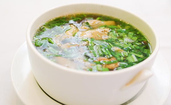 5. Tắt bếp và múc súp ra bát, thêm chút ngò. Vậy là món súp măng cua đã hòan thành rồi.