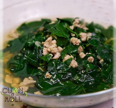 3. Cho 800ml nước vào nồi, đun sôi, cho rau ngót vào, nấu sôi, Cho thịt lợn đã ướp vào, sôi chừng 3 phút, tắt bếp. Không nấu canh quá nhừ, vừa chín mềm ăn sẽ thơm bùi lại không bị mất đi chất dinh dưỡng.