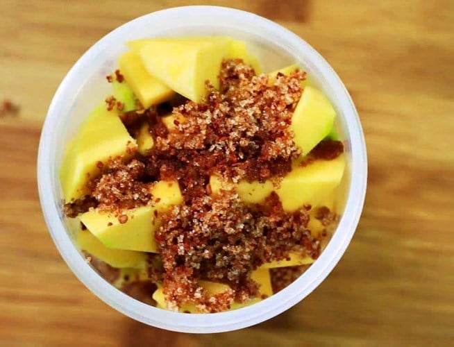 – Xoài, đường, nước mắm, muối tôm (muối ớt).