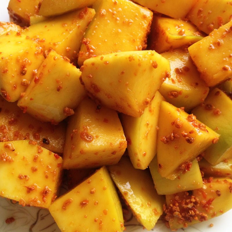 – Nên làm vừa phải ăn trong 1-2 ngày, xoài ăn vẫn giòn ngon.
