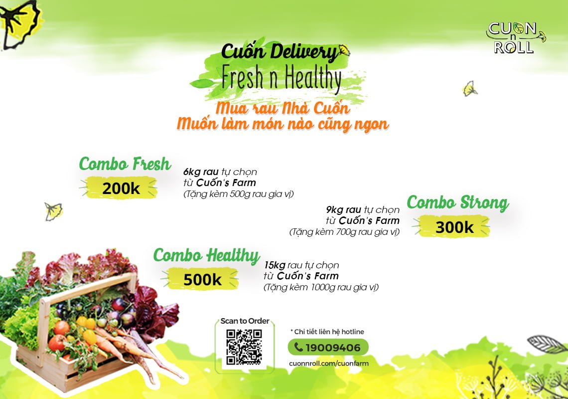 Bắt đầu từ tháng 3/ 2020, Cuốn bắt đầu cung cấp rau sạch qua kênh Take Away Cuốn’s Farm với các Combo Siêu Tiết Kiệm cho nhà mình thoải mái lựa chọn như: