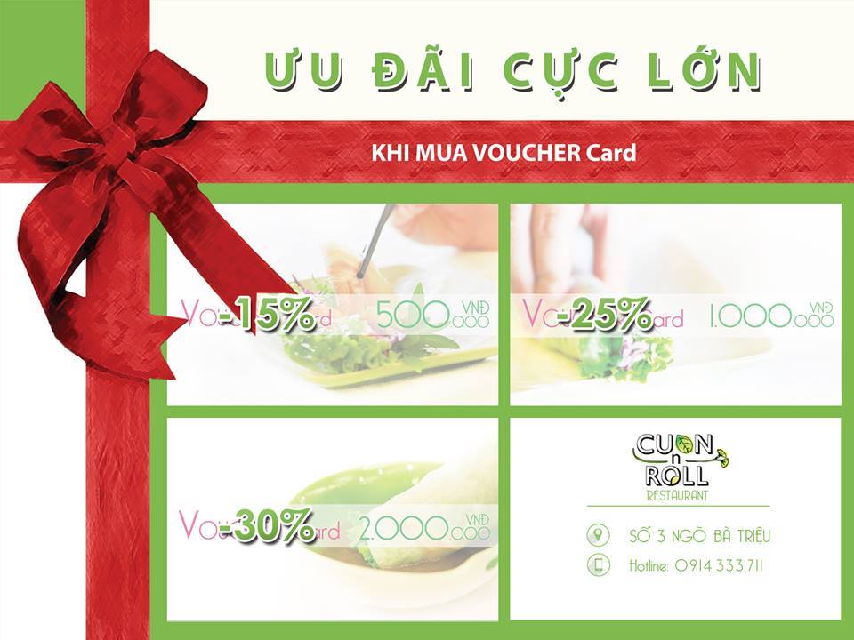 Kể từ ngày 8-3, bất cứ khácch hàng nào mua Voucher của nhà hàng Cuốn N Roll đều bắt đầu được áp dụng với trị giá như sau: