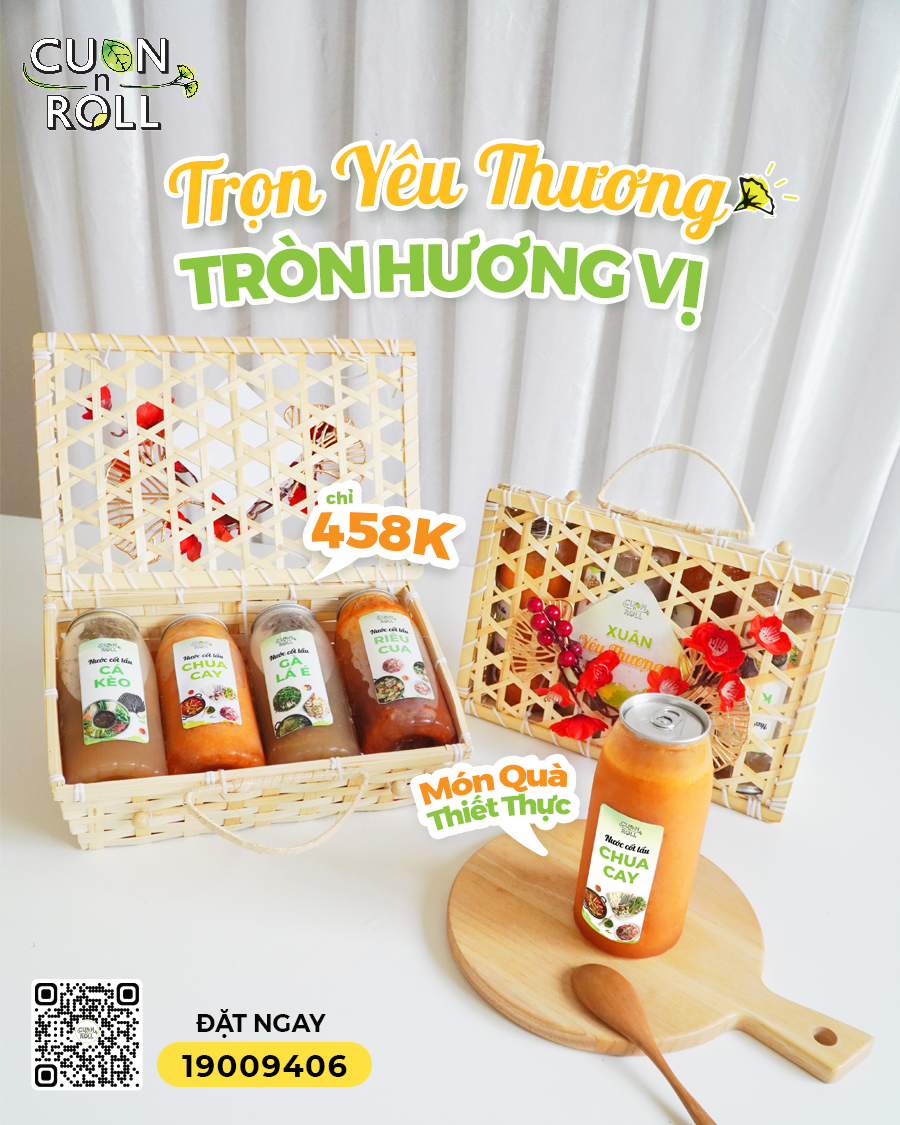 ? Chỉ #458K cho Giỏ Quà Tết thiết thực trong những ngày đoàn viên, lon cốt lẩu tiện lợi được đóng gói trong chiếc giỏ tre xinh xắn thân thiện môi trường. Nhà mình hãy yên tâm, vì xuất phát từ chính tình cảm của Cuốn, mỗi Giỏ quà đều được chuẩn bị chỉn chu từ hình thức tới chất lượng.