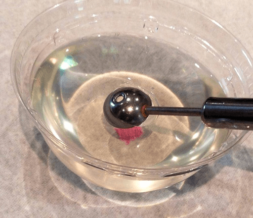 Nên chuẩn bị một bát nước ấm để làm tan thạch gelatin bám vào dụng cụ. Dùng giấy lau sạch dụng cụ để không bị lem màu giữa các cánh hoa.