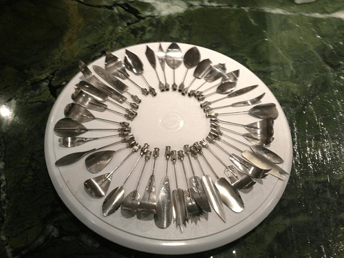– Dụng cụ làm thạch rau câu. Nếu muốn bánh đẹp, nhiều hình hoa lá lung linh thì cần nhiều dụng cụ như hình. Nếu không, chỉ cần dùng 2, 3 chiếc thìa đủ kiểu là được.