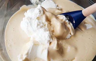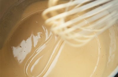 – Cho từ từ hỗn hợp kem vào với hỗn hợp trứng ở bước 2, trộn cho đến khi thật đều.