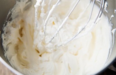 – Đánh cho đến khi hỗn hợp kem thật đều và có độ đứng, mịn.