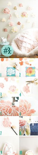 – Giấy lụa trắng, tấm mẫu hình bông hoa, chiếc lá, màu vẽ, cọ, băng dính, kéo, máy khâu