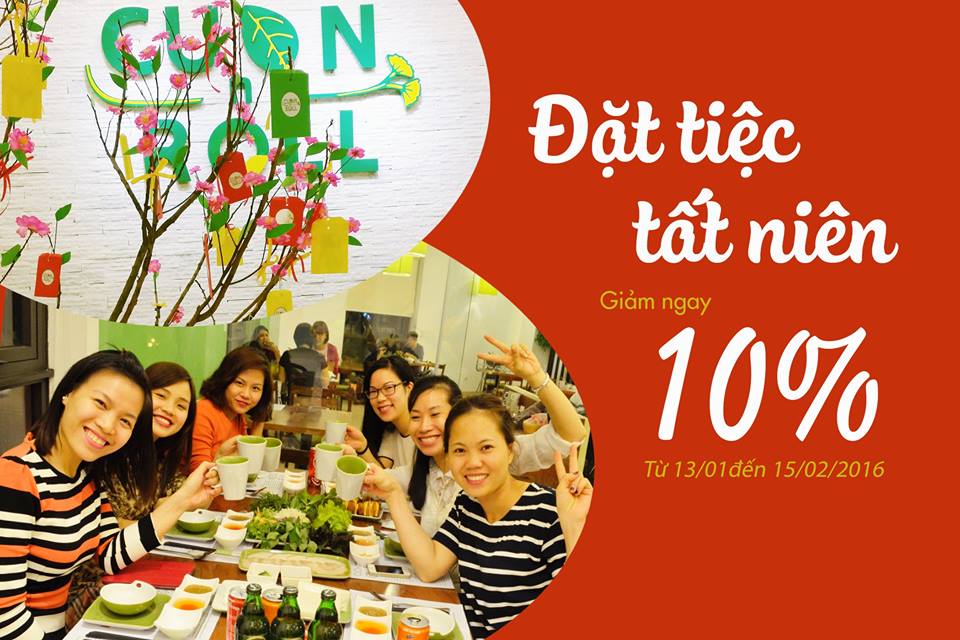 Bên cạnh đó khi đặt tiệc Liên hoan, tất niên công ty cuối năm; Cuốn N Roll cũng sẽ có rất nhiều ưu đãi hấp dẫn.