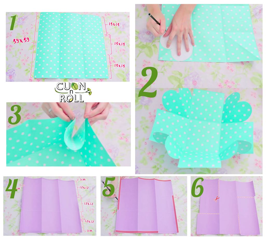 Bước 9: – Cắt giấy theo đường viền rồi gập giấy như hình là xong.