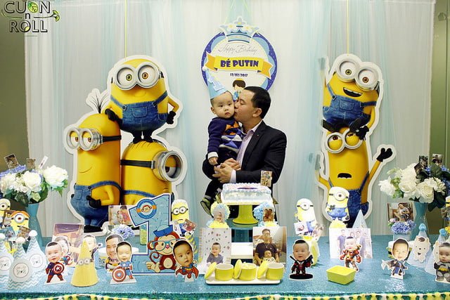 Nhân vật hoạt hình nhí Minions được các bé cực kỳ yêu thích và thích hú. Bởi có những câu chuyện hài hước, dí dóm mà các nhân vật hoạt hình diễn trên màn hình nhỏ. Đặc biệt nếu bạn trang trí tiệc sinh nhật cho bé với những hình ảnh Minions chắc chắn bé sẽ rất ấn tượng và không thể nào quên. Với chủ đề này, phù hợp hơn cho tiệc sinh nhật bé trai bạn nhé.