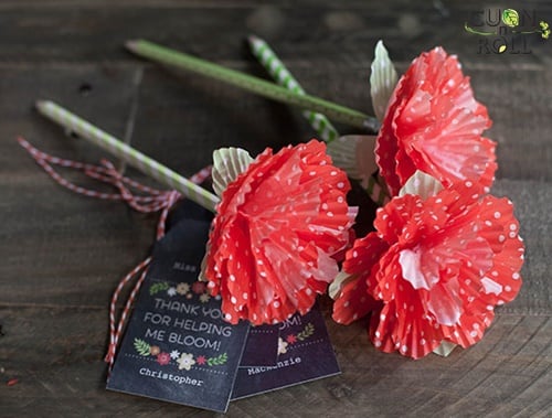– Giấy nến đựng cupcake màu đỏ và xanh ( số lượng tùy thuộc vào số lượng hoa bạn muốn làm)
