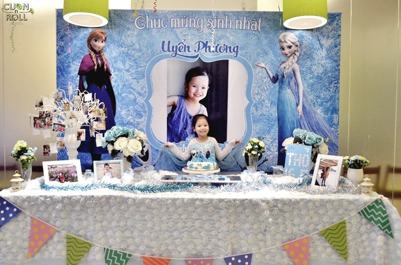 Trông Uyển Phương thật đáng yêu với chủ đề Frozen xanh phải không ạ?