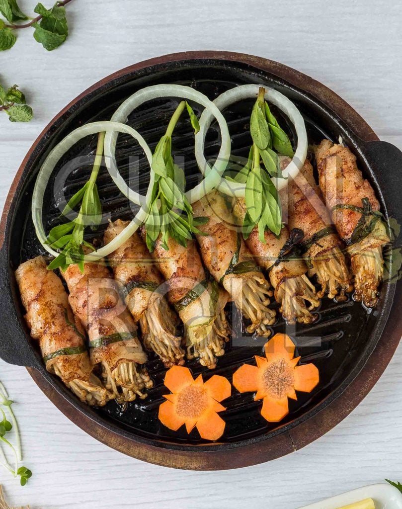 Một Cuốn thịt nướng với bò Mỹ giòn giòn và ngọt thịt cùng chút nấm kim châm dai dai cuốn cùng với thật là nhiều loại rau khác nhau, quả là tuyệt vời cho những ngày mùa thu mát mẻ.
