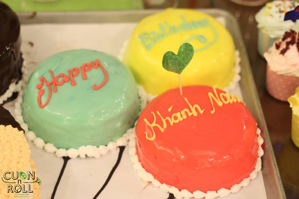 Trên bánh còn cắm chữ HAPPY BIRTHDAY!