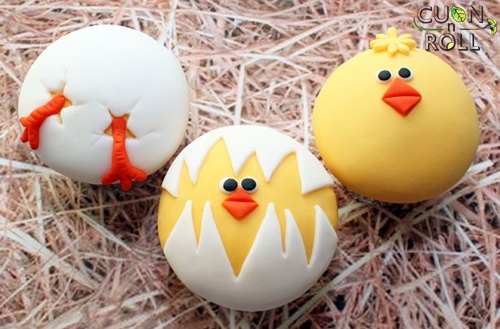 Hoặc với các bé có biệt danh gà con hay yêu thích các bộ phim hoạt hình có những chú gà xinh xắn, nhỏ nhắn các bạn cũng có thể đặt những chiếc cupckes hình gà con phủ kem này