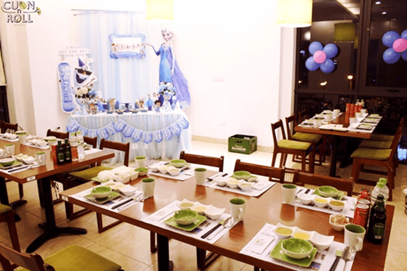 Gọi ngay Hotline ☎️ 0914 333 711 để được tư vấn từ A đến Z về dịch vụ tổ chức sinh nhật cho bé với những siêu ưu đãi 5 Lý Do Khiến Bố Mẹ Chọn Cuốn & Hoolong Làm Địa Điểm Tổ Chức Sinh Nhật Cho Bé ✨ Dịch vụ trọn gói, đa dạng các concept trang trí ✨ Thực đơn đa dạng - bổ dưỡng với nguồn nguyên liệu an toàn ✨ Không gian sang trọng, riêng tư, rộng rãi ✨ Đội ngũ nhân viên chuyên nghiệp ✨ Chi phí hợp lý với những ưu đãi hấp dẫn Nhà hàng Cuốn N Roll ? Cuốn 1: số 18 Đoàn Trần Nghiệp, HBT, HN ? 0243 978 1096 ? Cuốn 2: tầng 3 nhà D2, Giảng Võ, BĐ, HN ? 0243 201 8555 ? Cuốn 3: 17T6 Hoàng Đạo Thúy, TX, HN ? 0246 251 2181 ? Cuốn 4: Tầng 1, Sunrise Building, 90 Trần Thái Tông, CG, HN ? 0243 200 8889 Nhà hàng Hoolong - Dumpling Bar ? số 18 Đoàn Trần Nghiệp, HBT, HN ? 0243 978 1096